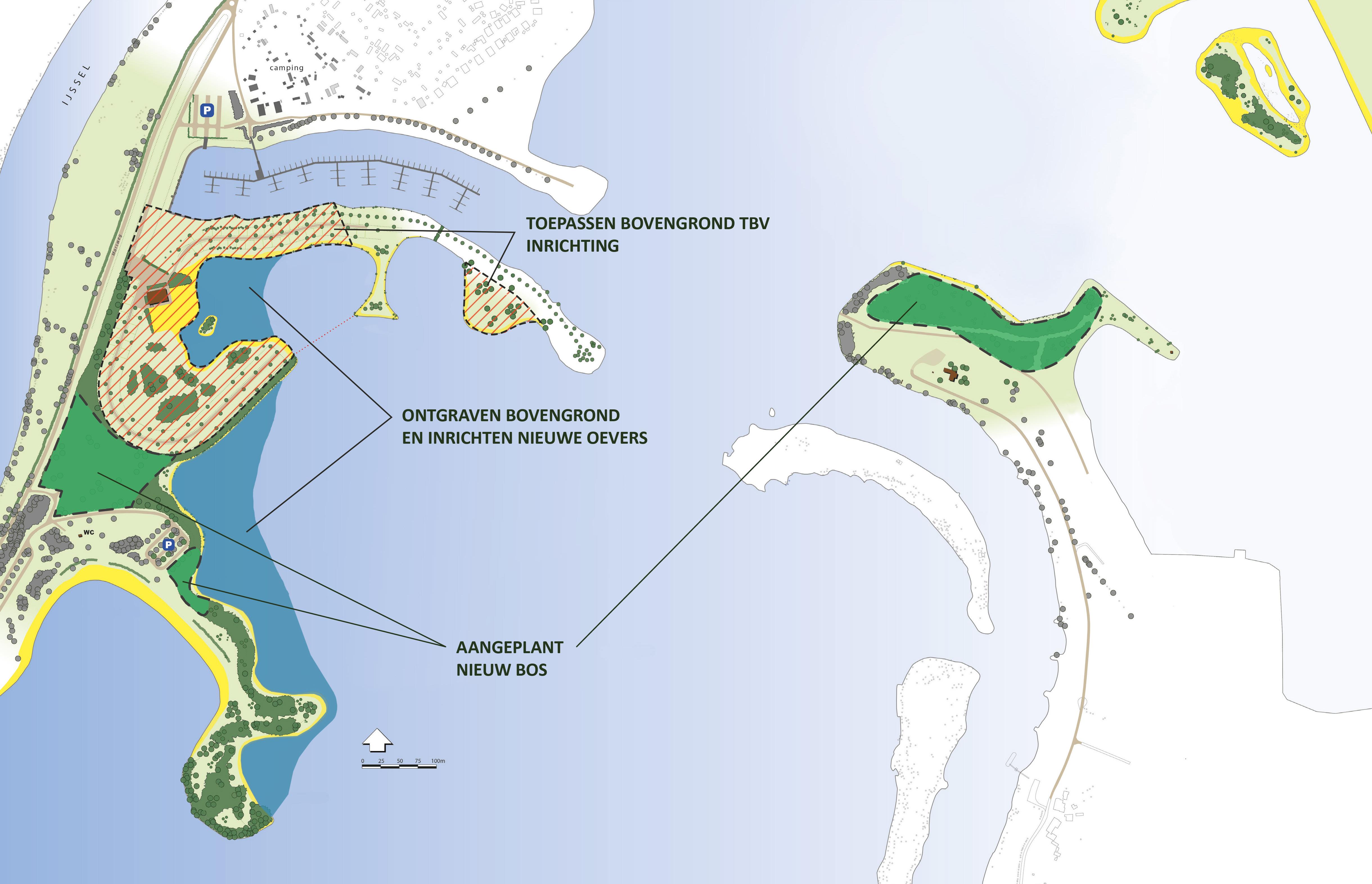 Vooruitlopend op de zandwinning leggen we de oevers en bijbehorende oeverzone volgens het inrichtingsplan aan. De zandwinning start op een later moment. Wanneer dat precies gaat zijn, is op dit moment nog niet bekend. Uiteraard communiceren we dit op de projectpagina als er meer over bekend is.