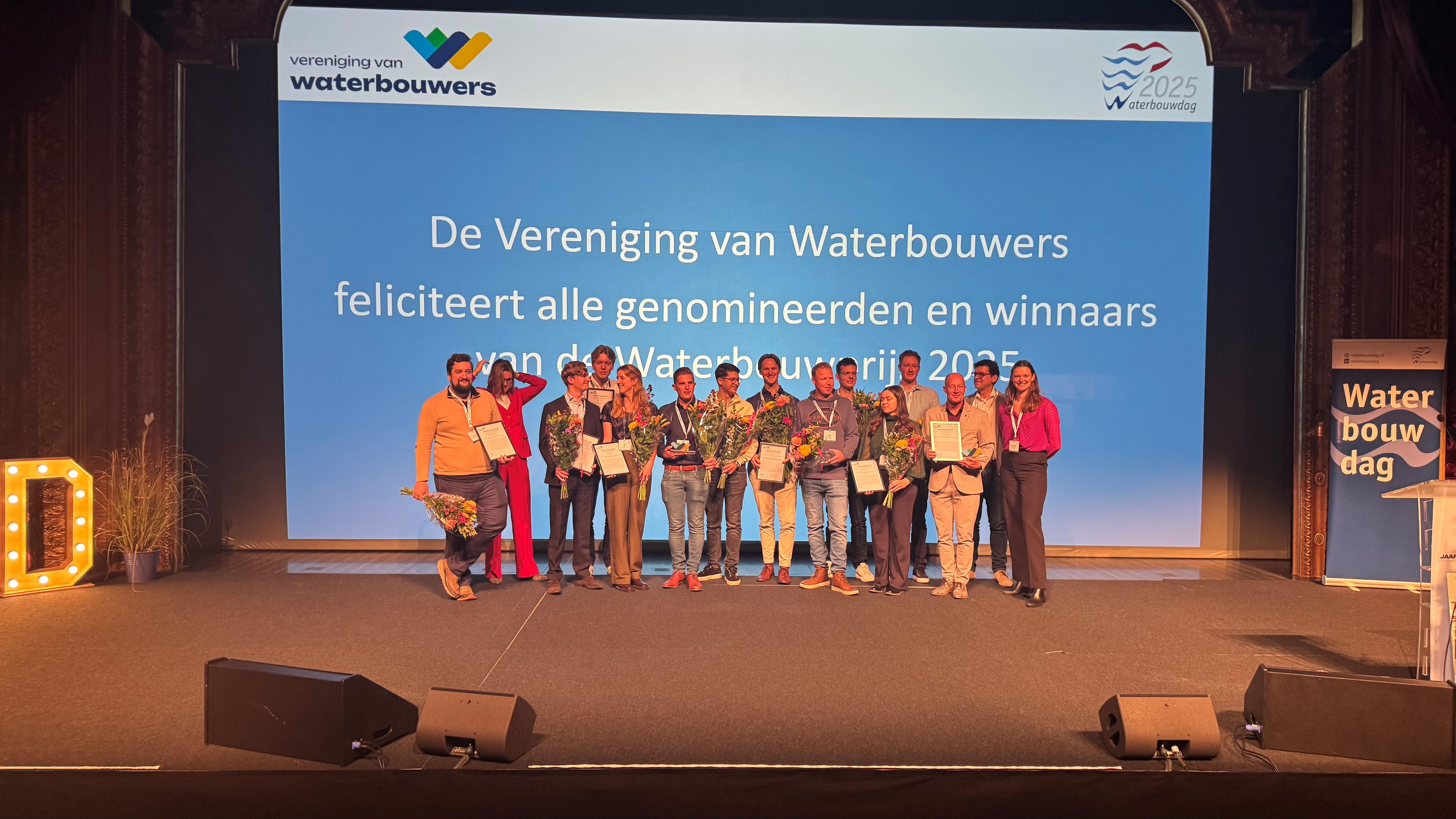 Foto: Alle prijswinnaars op het podium © Vereniging van Waterbouwers.