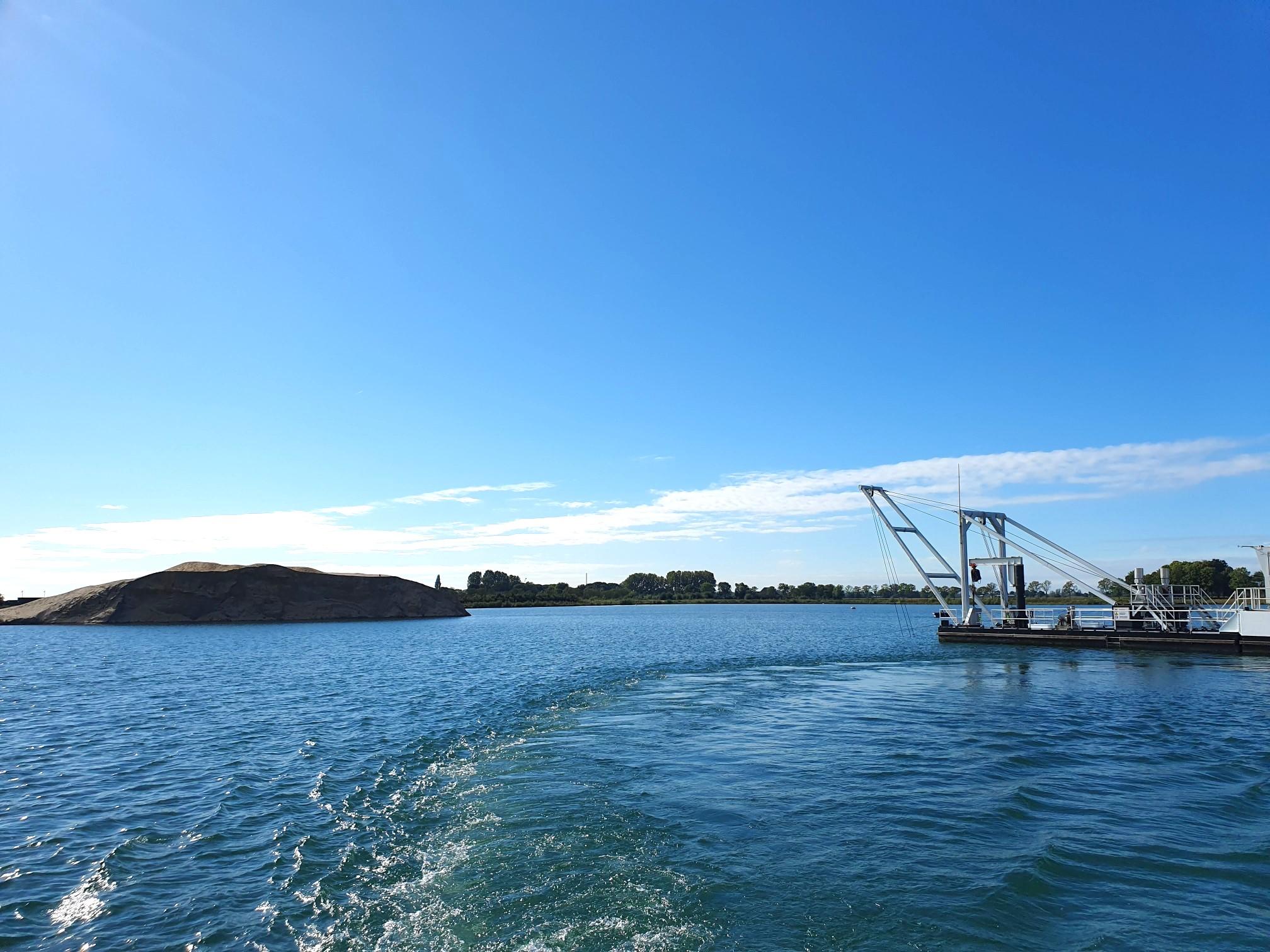 Als je op het water bent, kan een bezoekje aan de zandzuiger niet ontbreken. Zuigermachinist Arjan Krijgsman liet zien hoe dit in zijn werk gaat. De zandzuiger zorgt voor – de naam zegt het al – het opzuigen van het zand en het transporteren van het zand naar het installatieterrein via buizen.